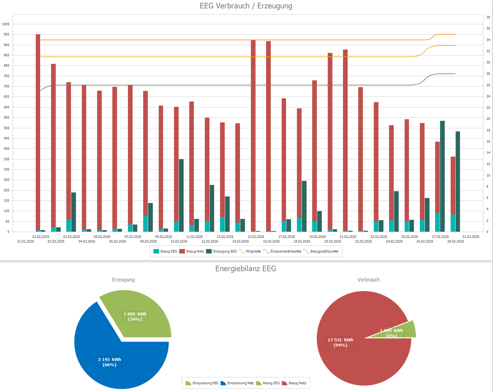 Hier siehst du detailliert, wieviel du von unserer EEG bezogen bzw. in diese eingespeist hast.